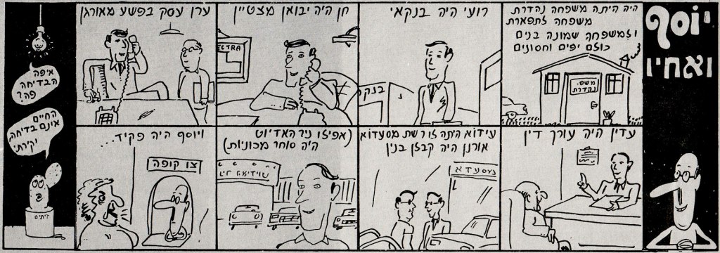 מתוך ״ספר מגוחך״ (1981), דודו גבע וקובי ניב, פורסם במקור כקומיקס שבועי בשבועון ״העיר״ של תל אביב